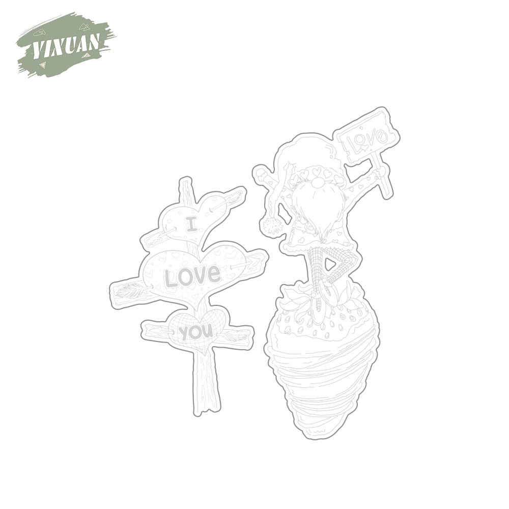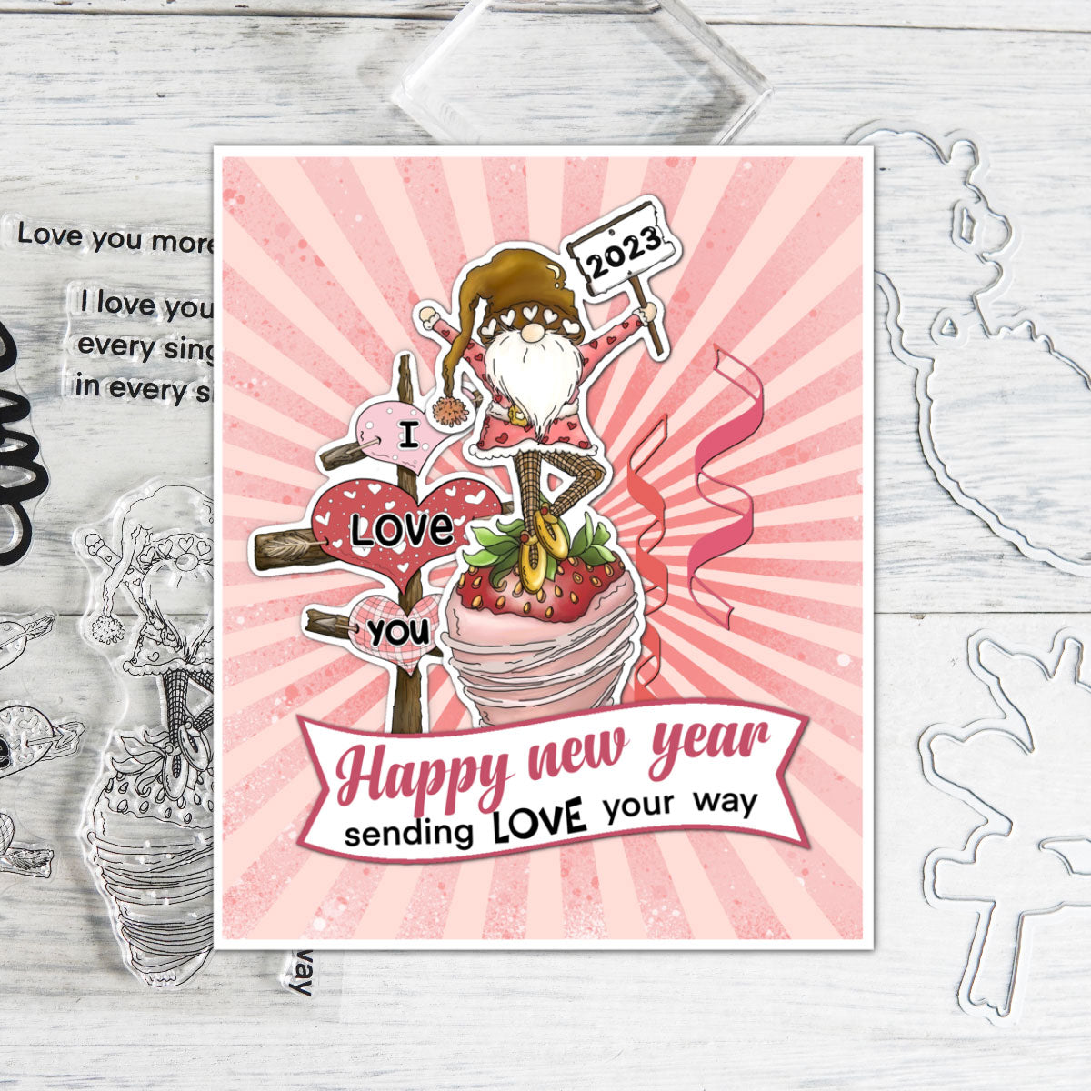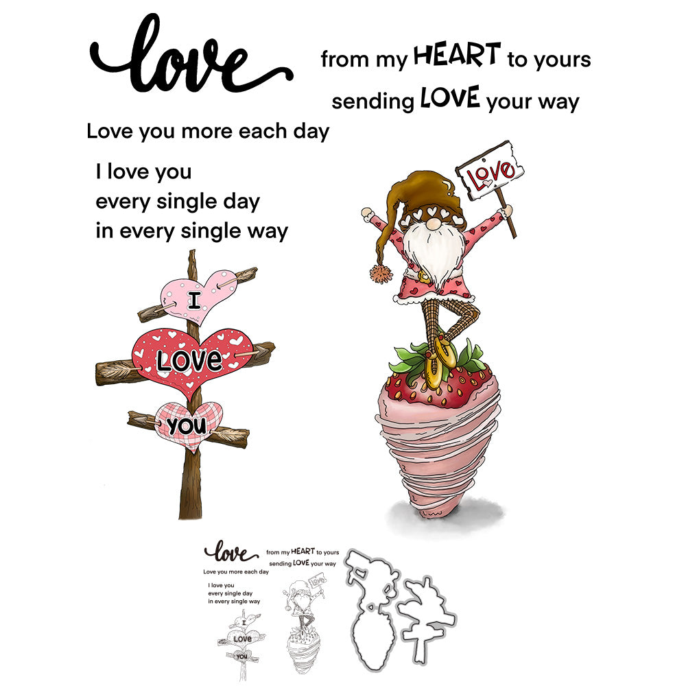 Love Valentine's Day Series Cute Heart Gnome Strawberry Cutting Dies And Stamp Set YX929-S+D