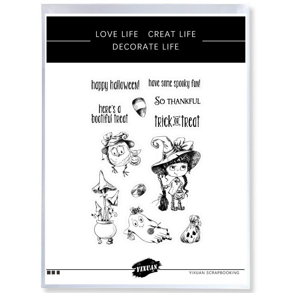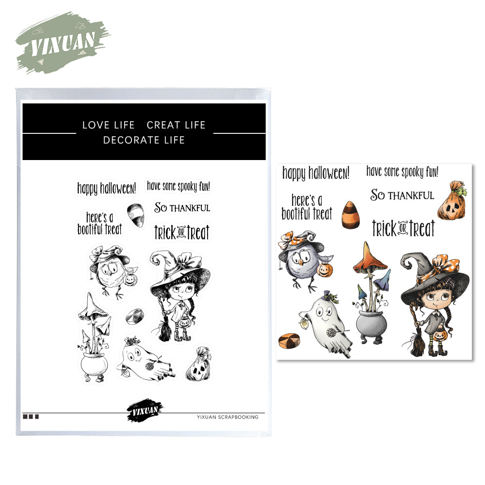 Happy Halloween Cutting Dies And Stamp Set Halloween Ghost Witch Pumpkin YX767-S+D