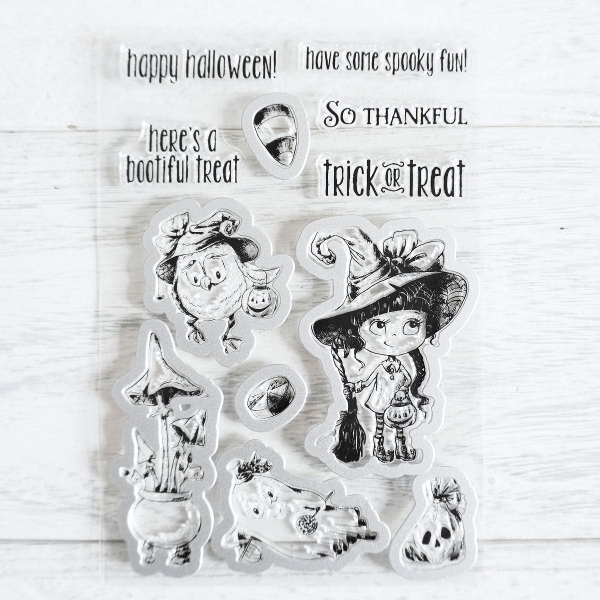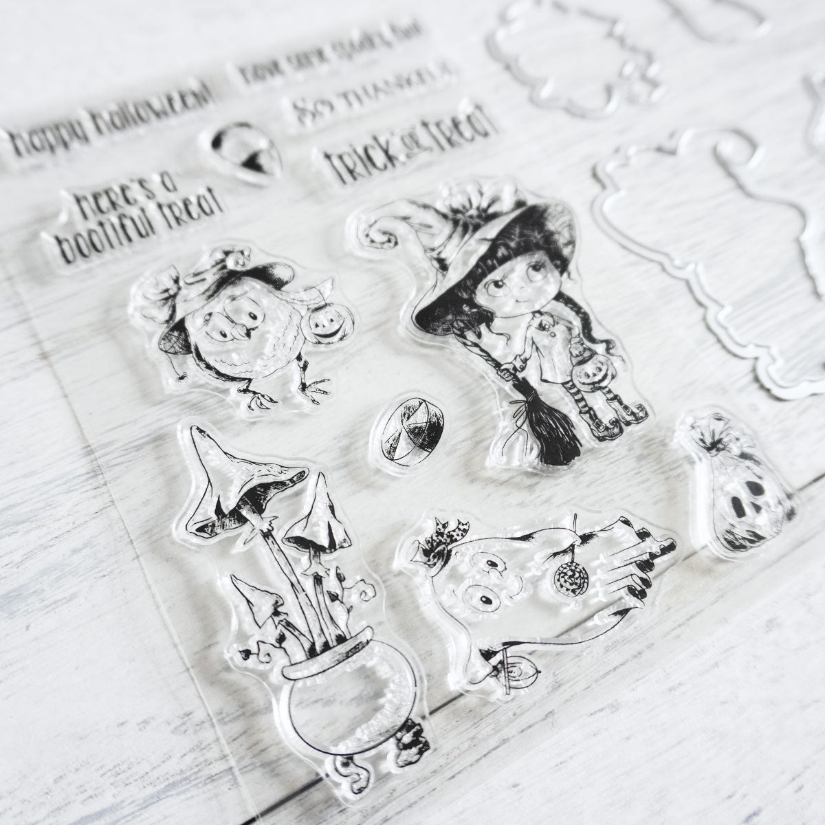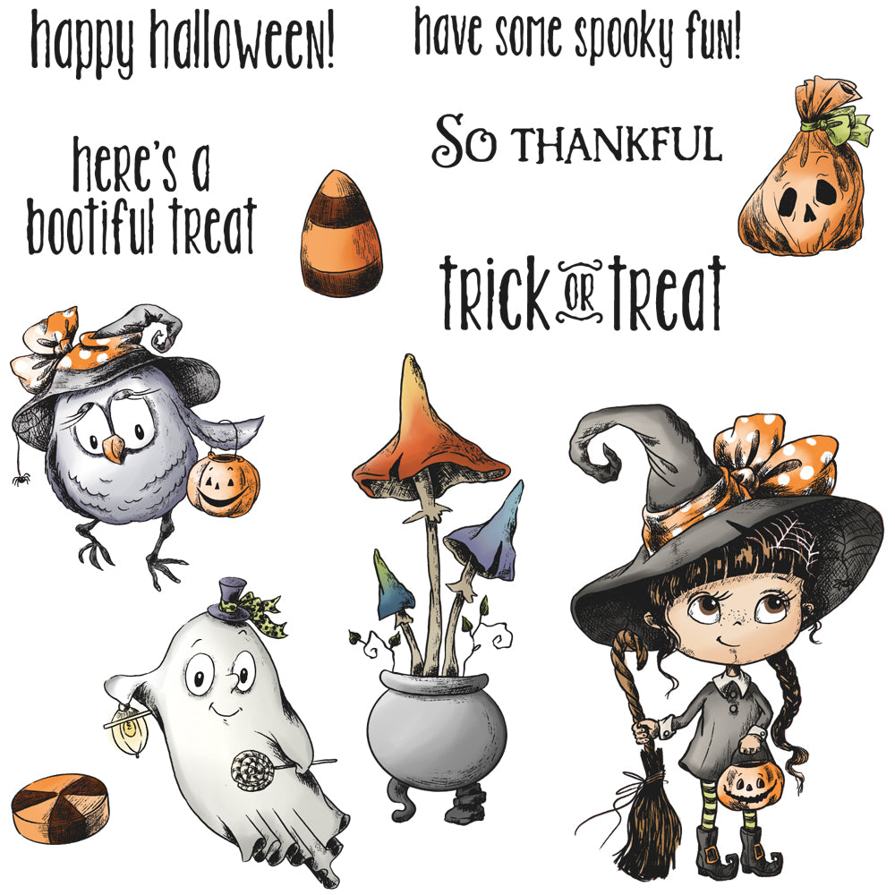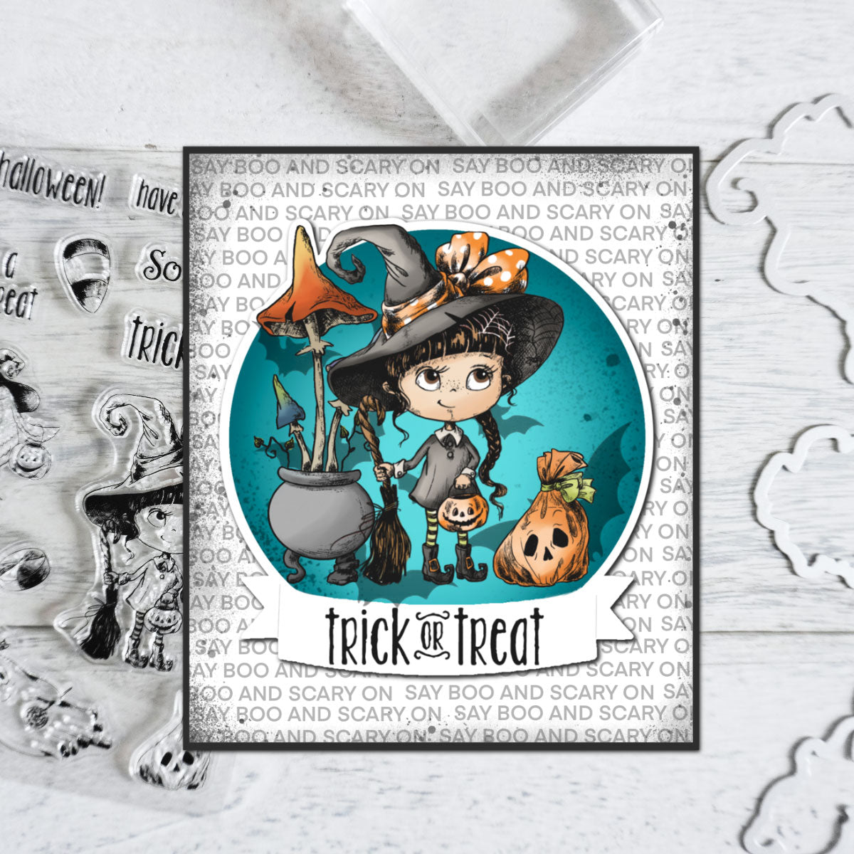 Available for purchase separately Happy Halloween Ghost Witch Pumpkin dies set and Happy Halloween Ghost Witch Pumpkin clear stamp