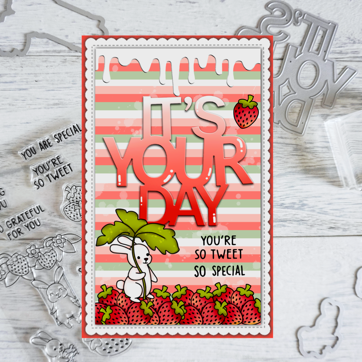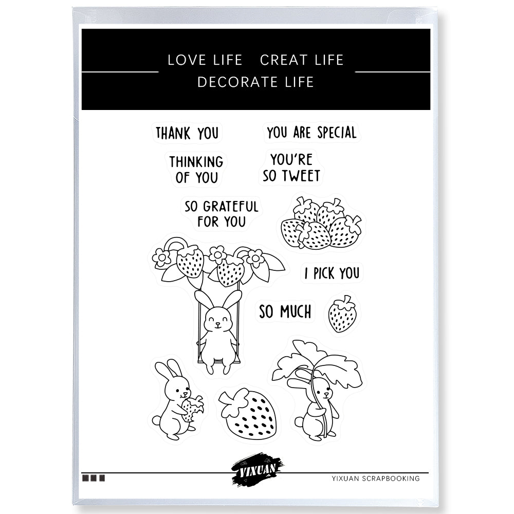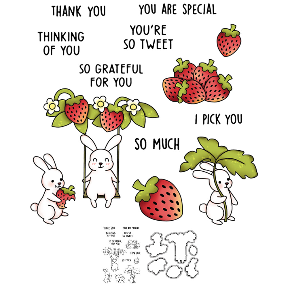 Sweety Cartoon Rabbits And Strawebrry Cutting Dies And Stamp Set YX672-S+D