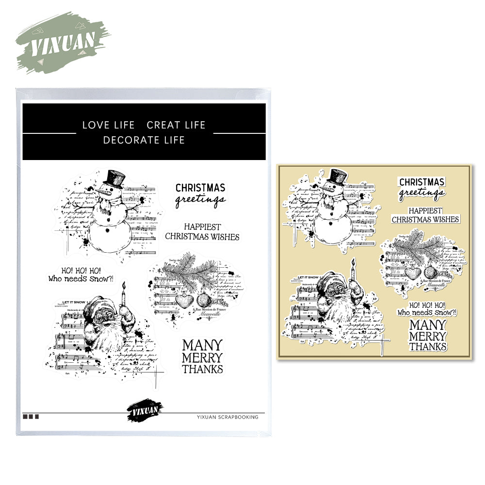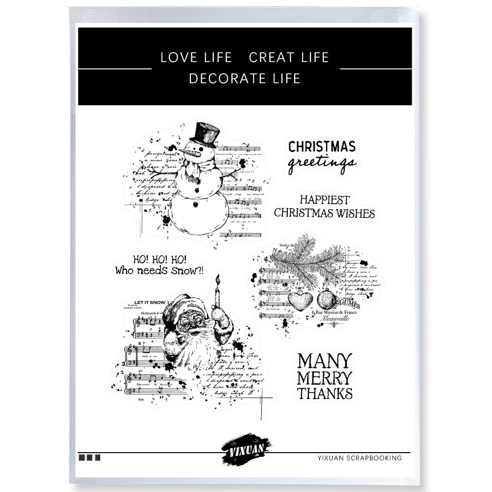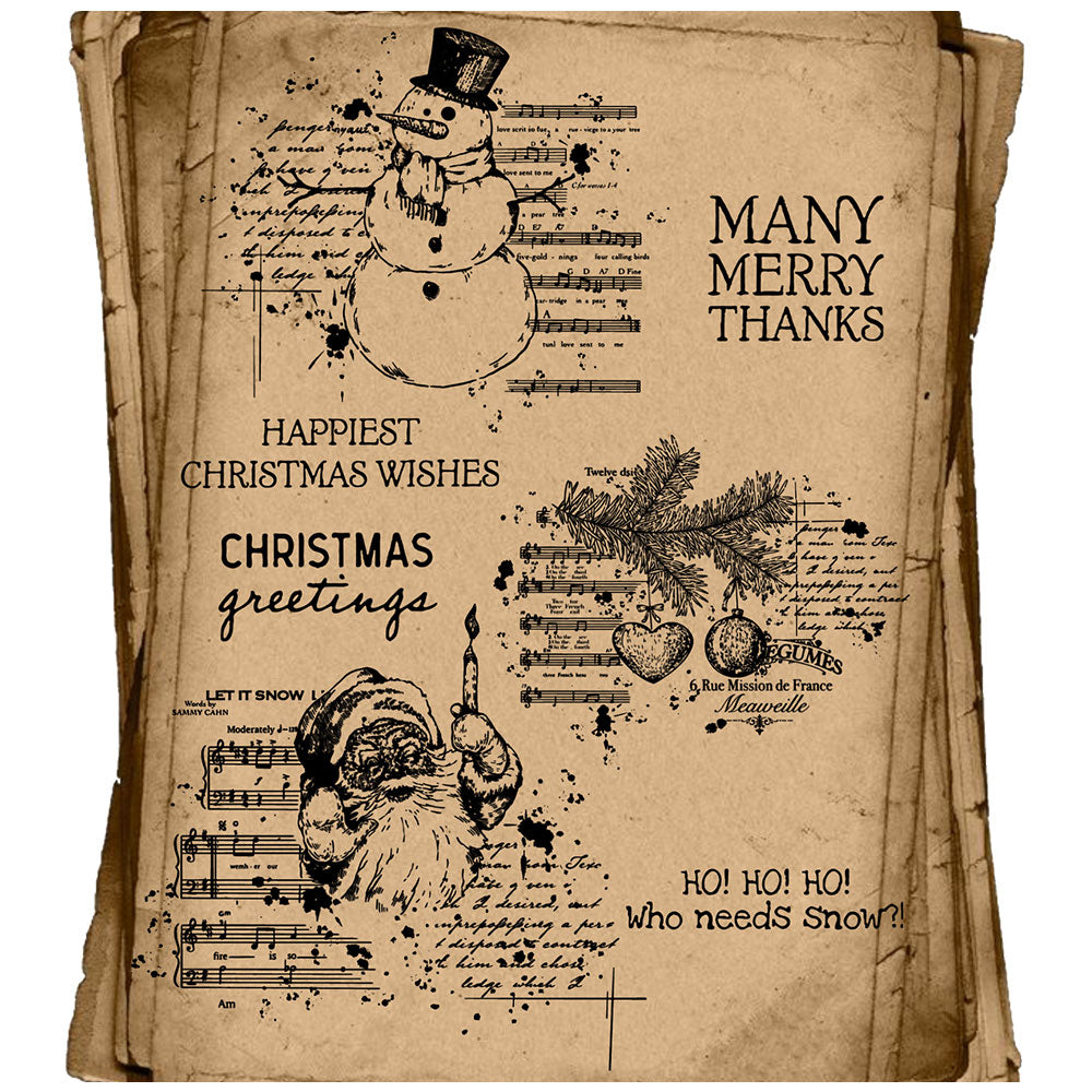 Retro Christmas Bell Winter Snowman Santa Clause Clear Stamp YX791