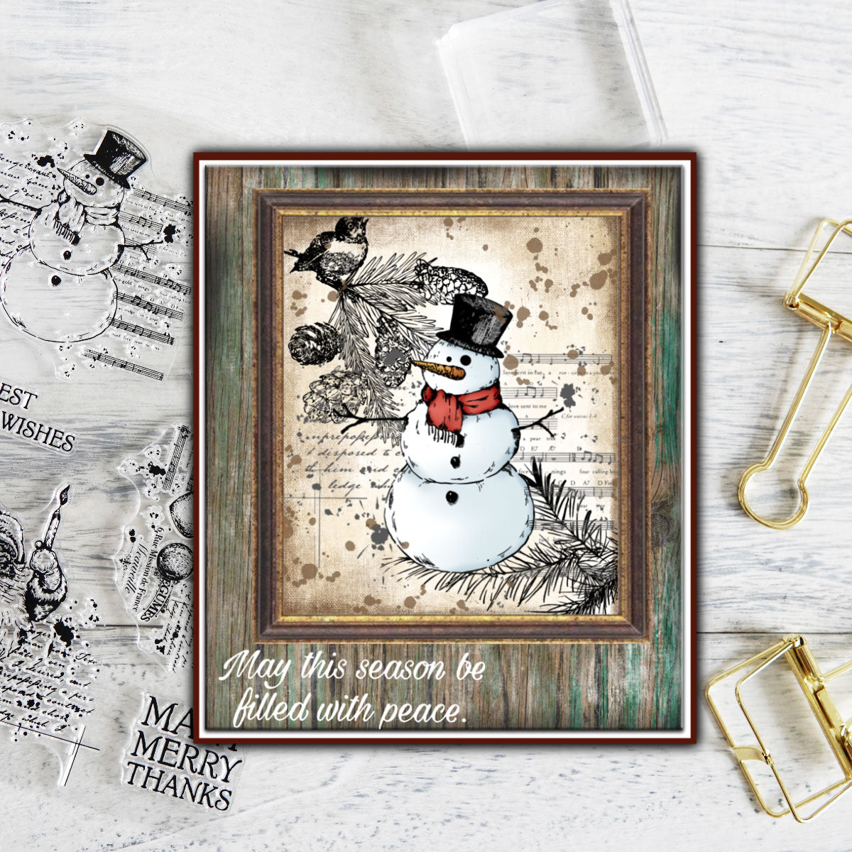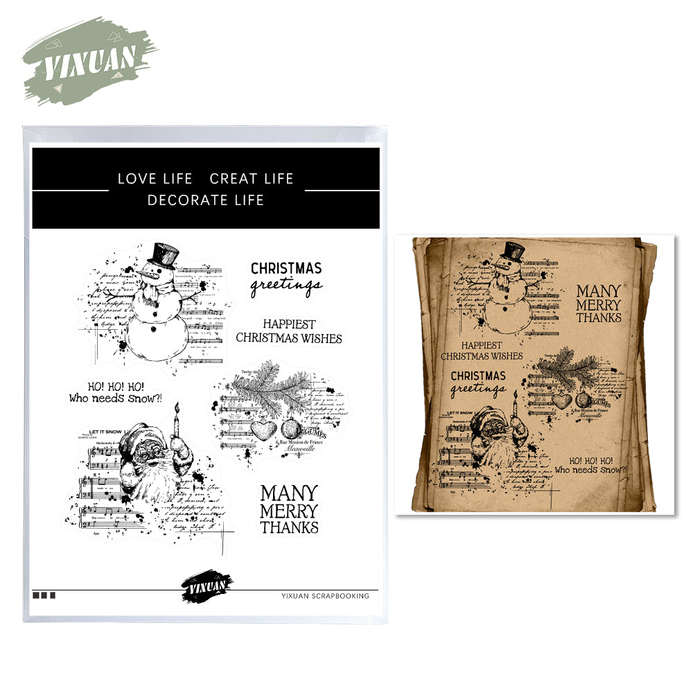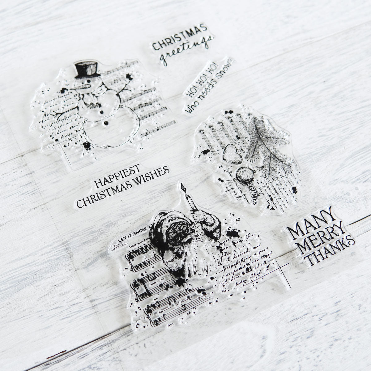 Retro Christmas Bell Winter Snowman Santa Clause Clear Stamp YX791