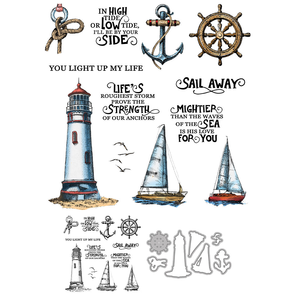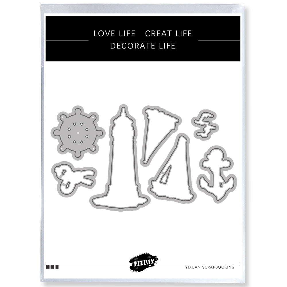 Lighthouse Sailboat Navigation Accessories Cutting Dies And Stamp Set YX1314-S+D