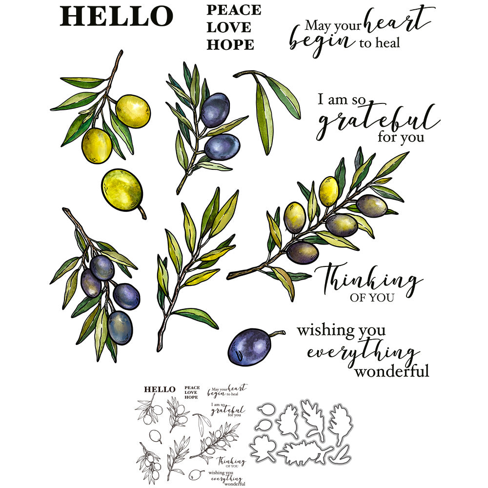 Nature Olive Branches And Leaves Cutting Dies And Stamp Set YX934-S+D