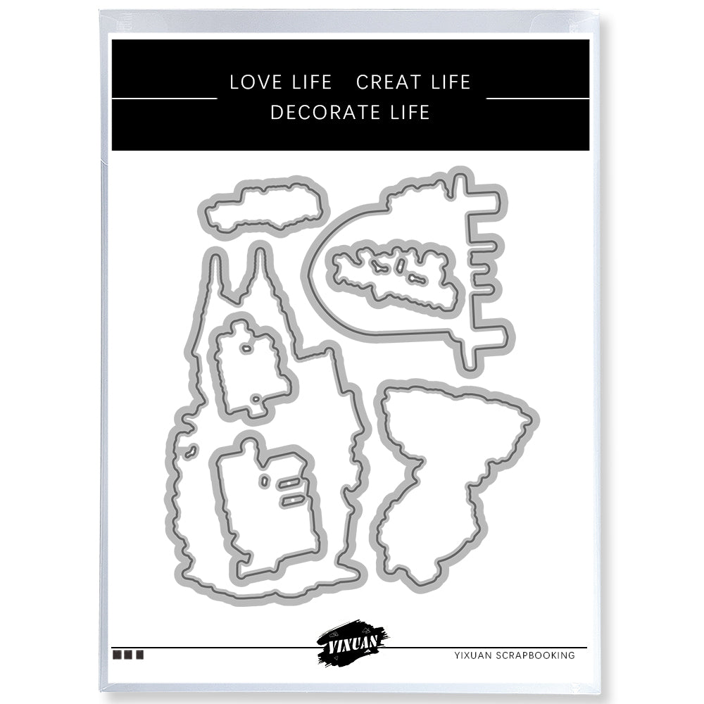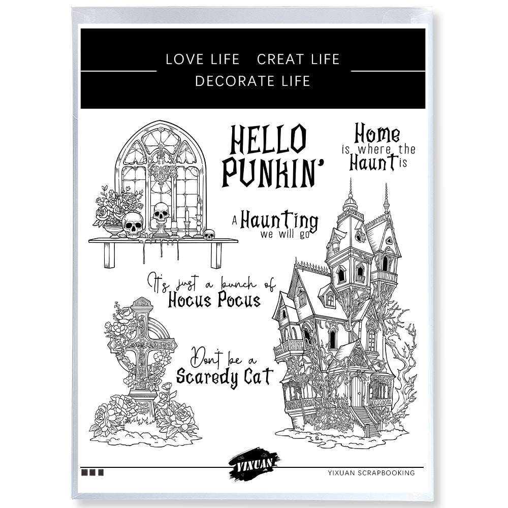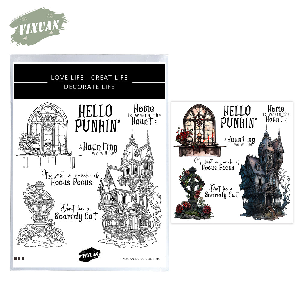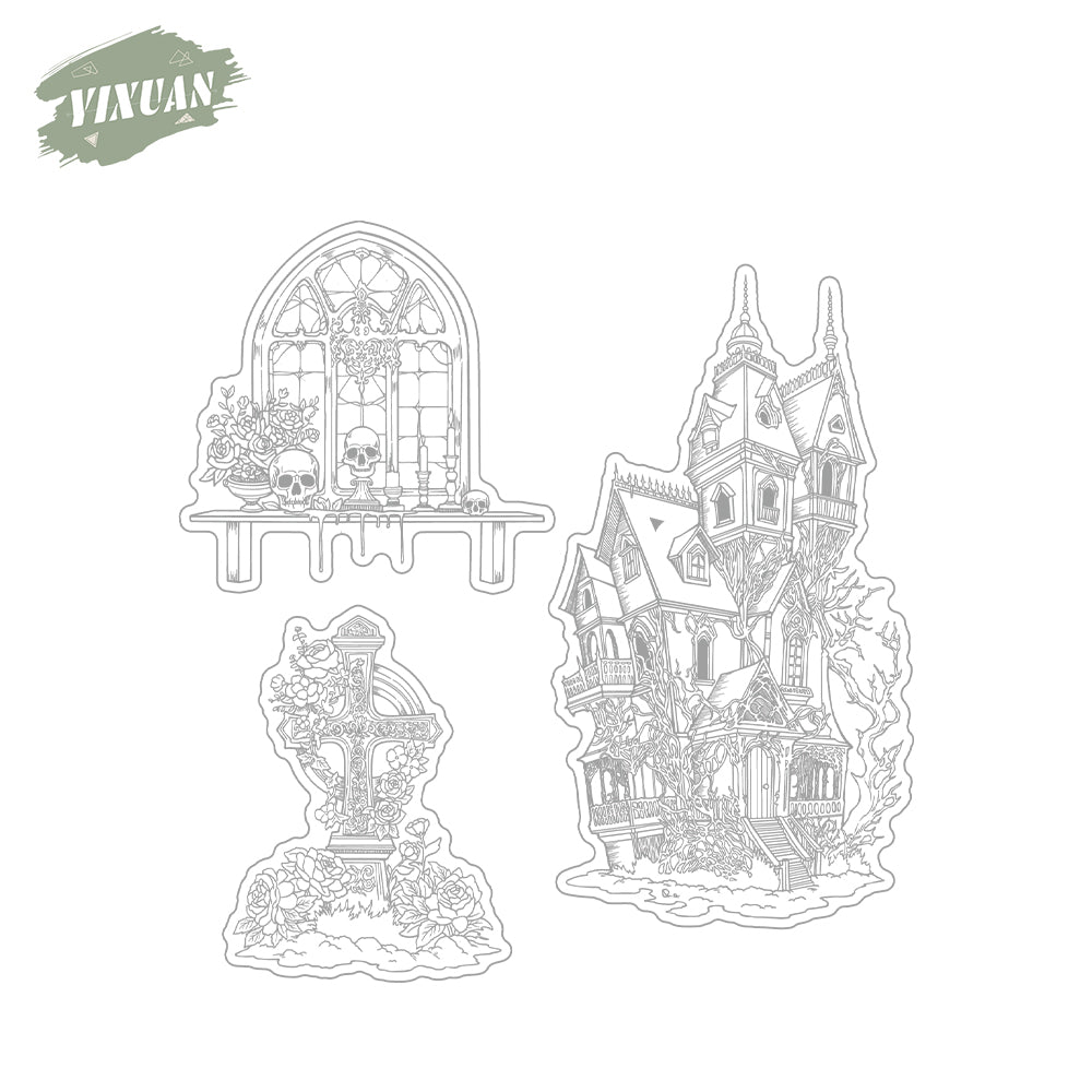 Gothic Castle Skull Grave Roses Happy Halloween Cutting Dies And Stamp Set YX1408-S+D